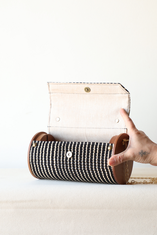 Non detachable fixed sleeve - round -Bidan upcycled Round Clutch