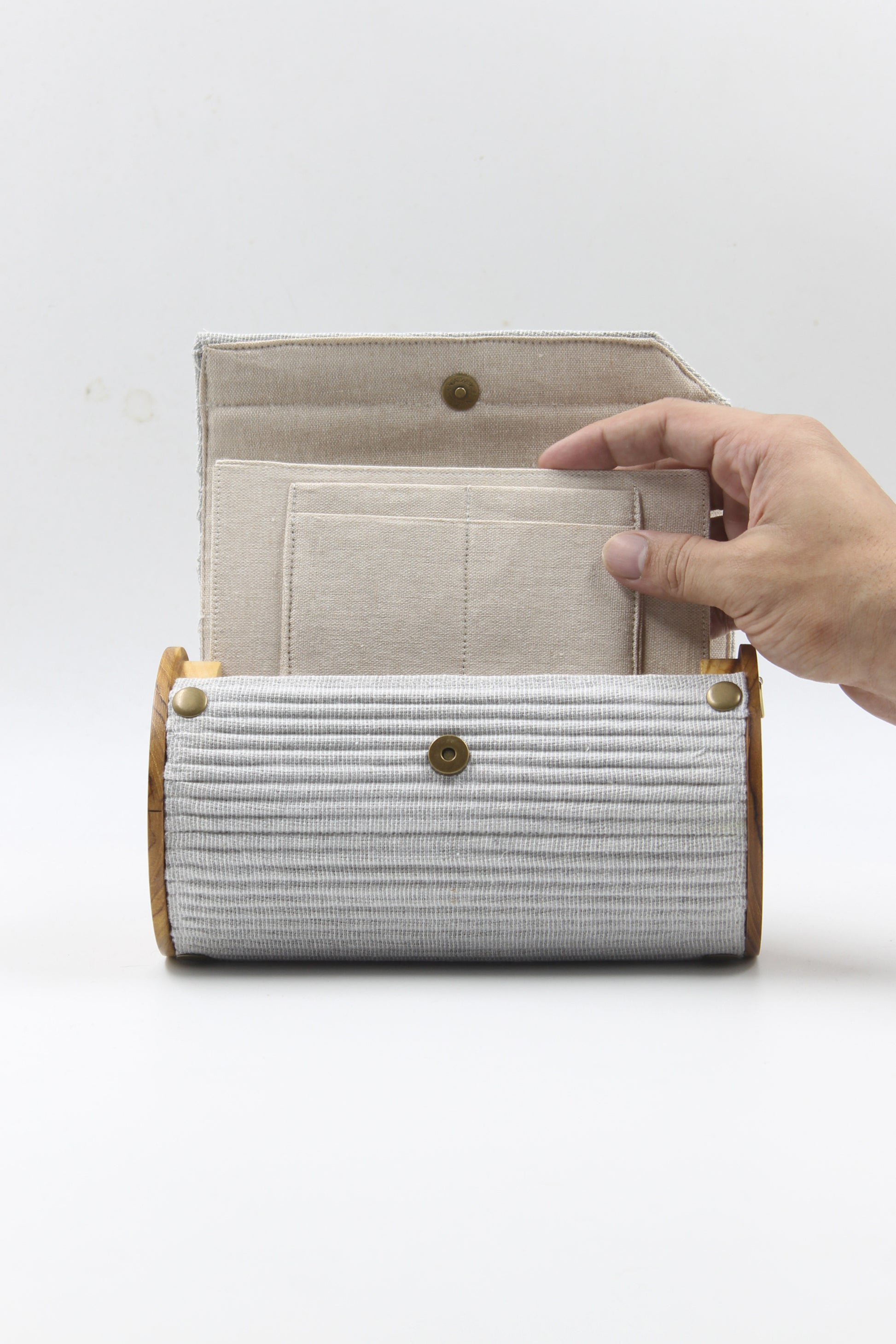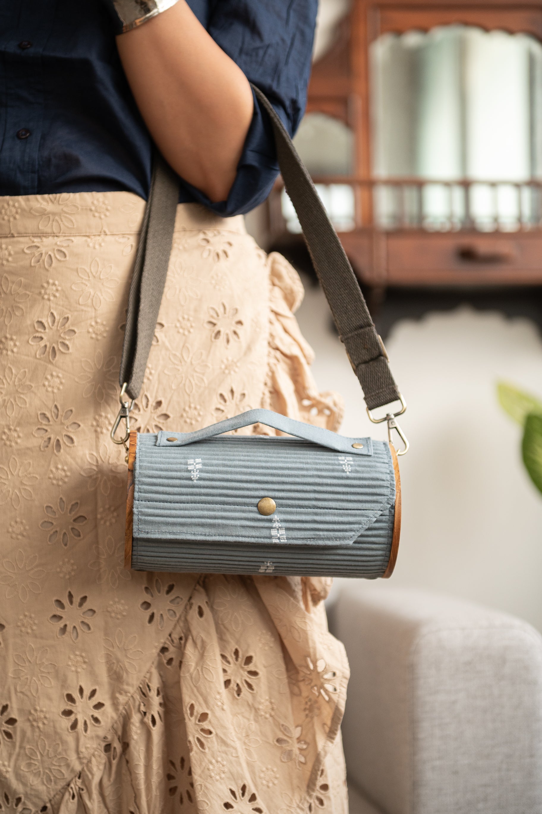 Introducing our round clutch – the epitome of versatility! Tailor your style with two detachable sleeves for mood changes. Featuring an extra compartment for your ATM cards doubling as a card holder, plus a convenient sling bag. Completely collapsible, crafted from 100% cotton, and free from plastic.