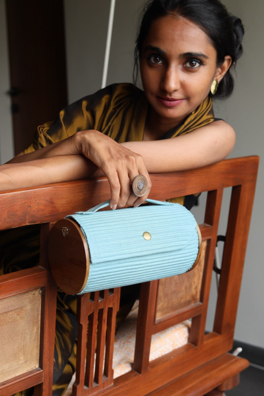 Sustainability: If we used virgin fabric and dyes our carbon footprint and water usage would be off the charts. Instead, our circular production uses upcycled Fabrics sourced directly from Block printer, and post production waste by local Tailors and Designers.. Lukka Chuppi Round Clutch – compact yet spacious enough to accommodate all your essentials. This two-in-one bag comes with two sleeves, one pair of wood, a sleek belt, and a divider to enhance organizational efficiency.