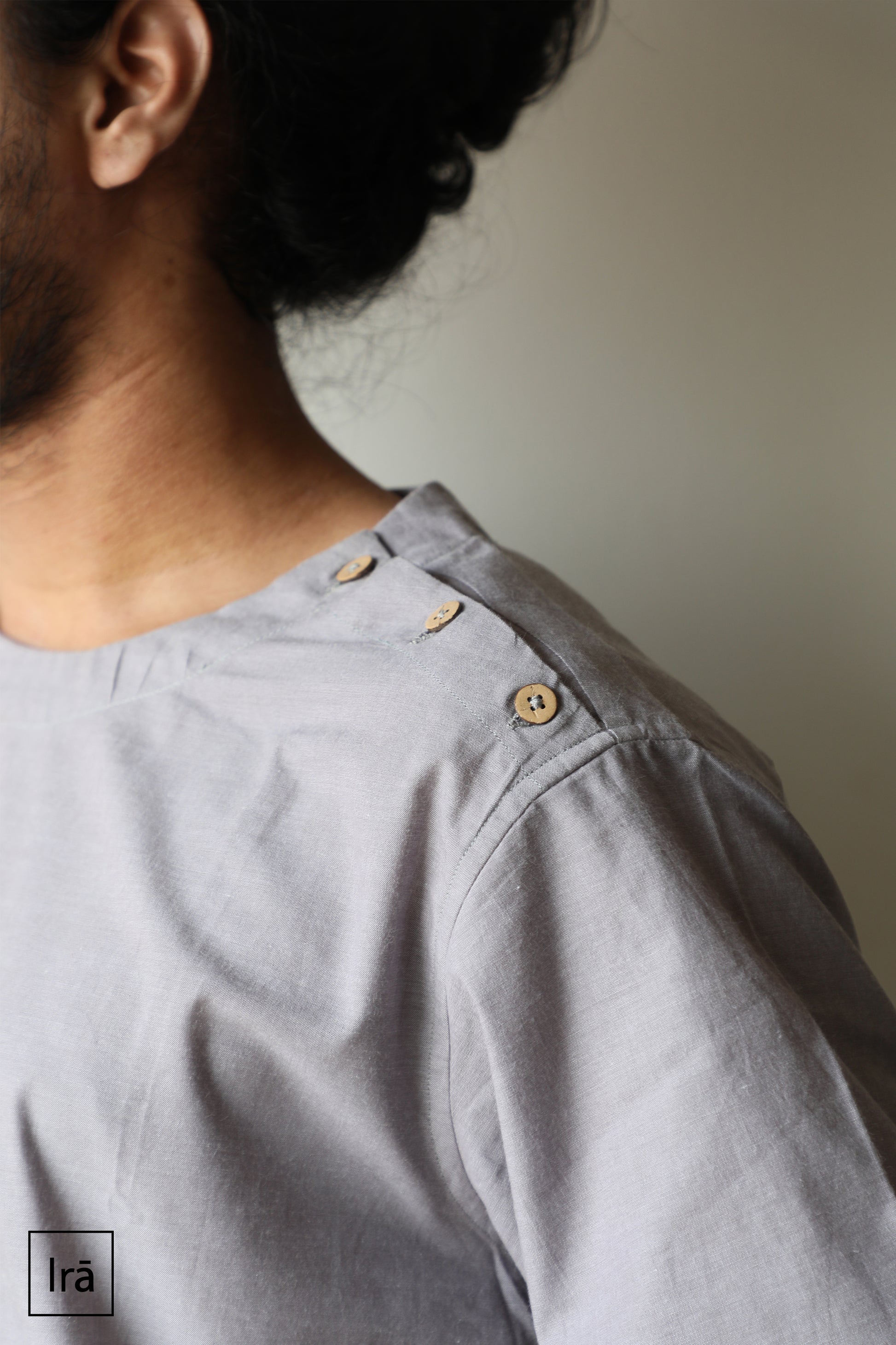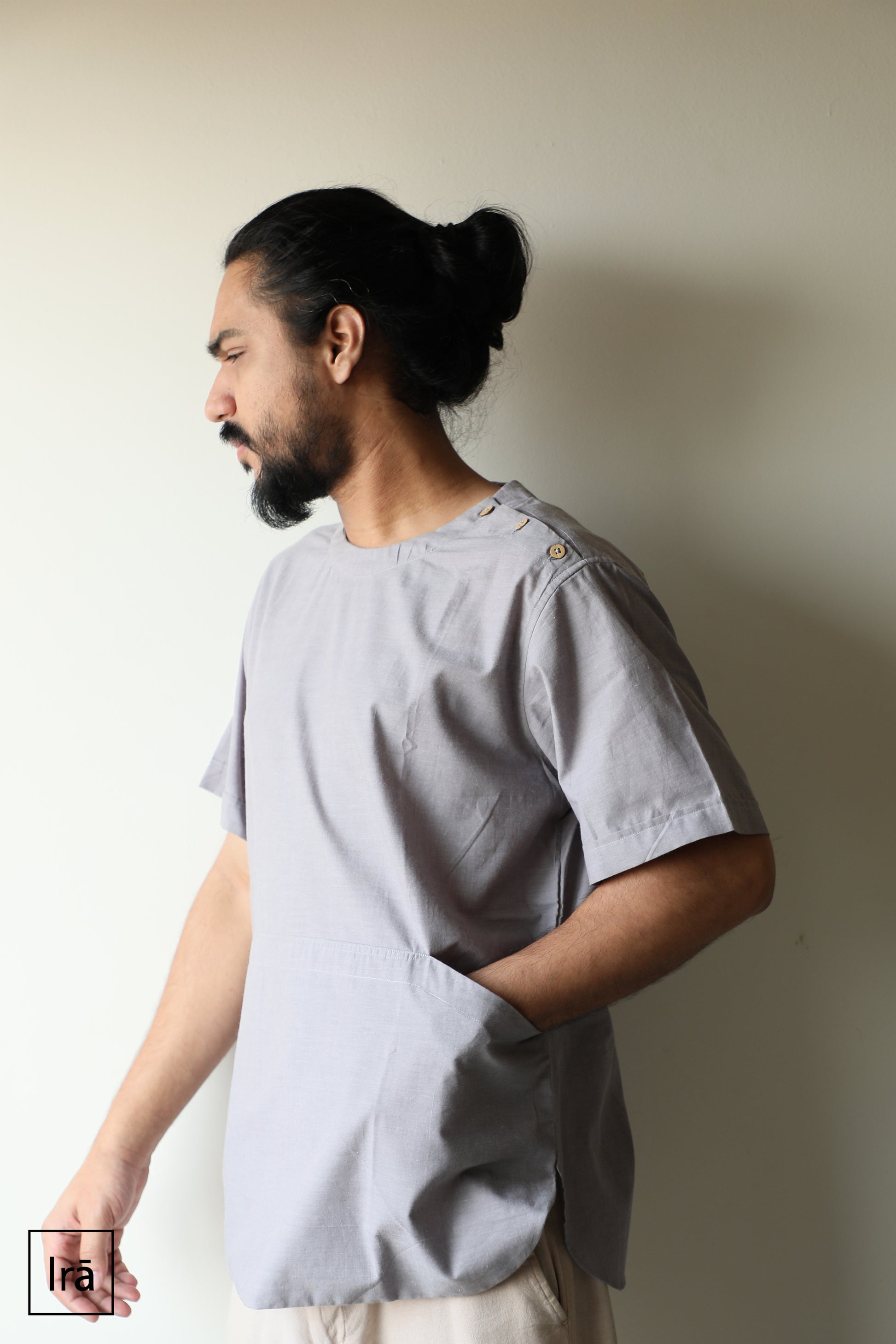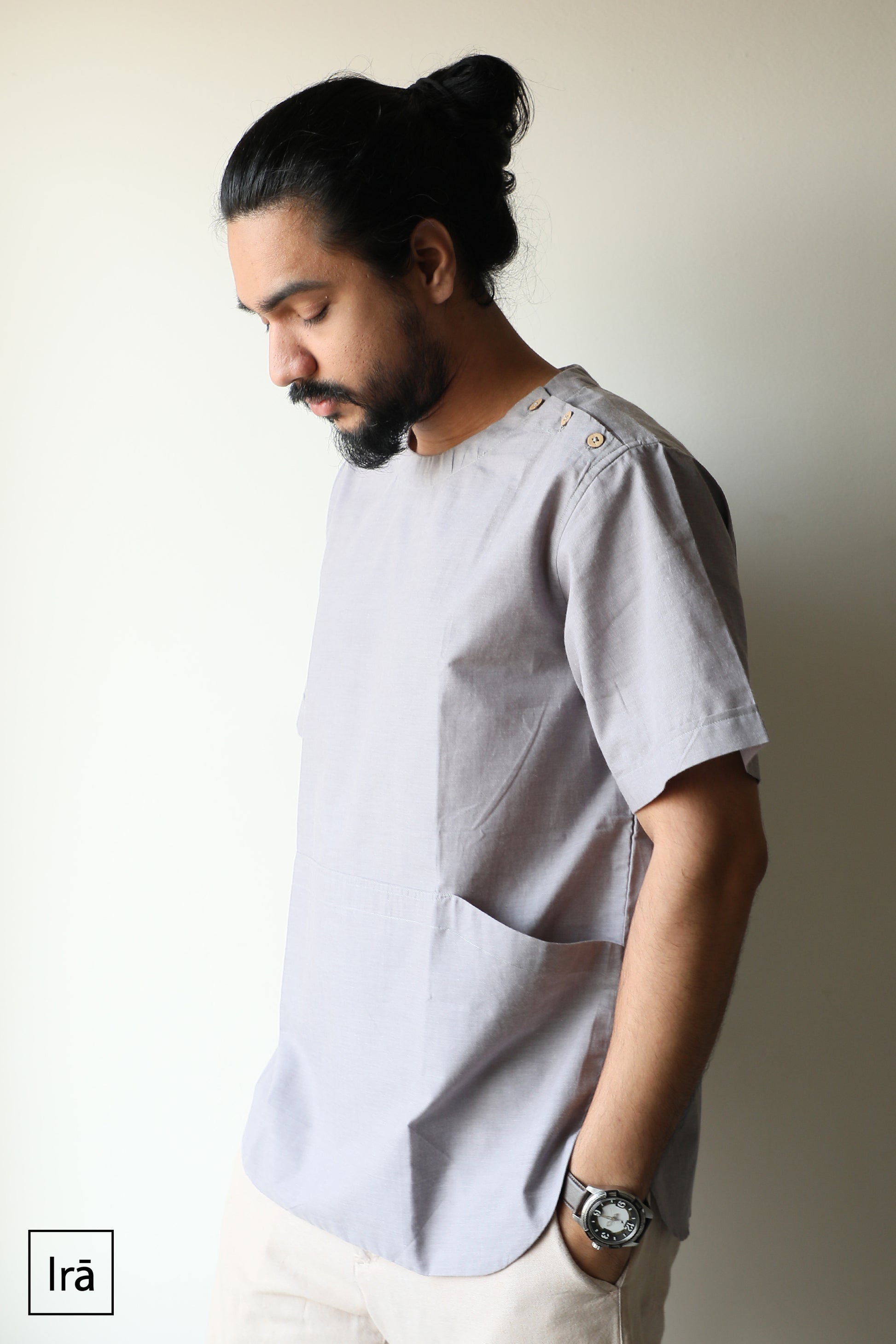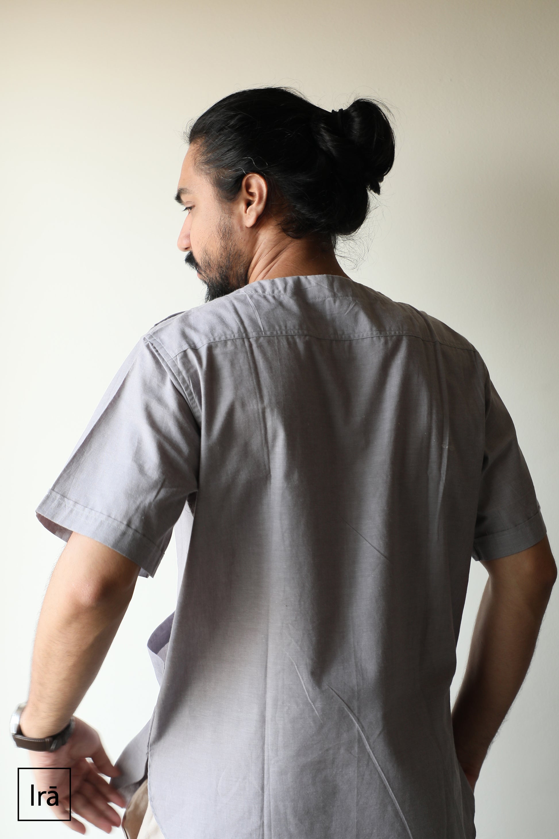 Adding to our collection of everyday shirts for men. Made in breathable cotton. Comes with half sleeves and a off collar and side accent pocket.