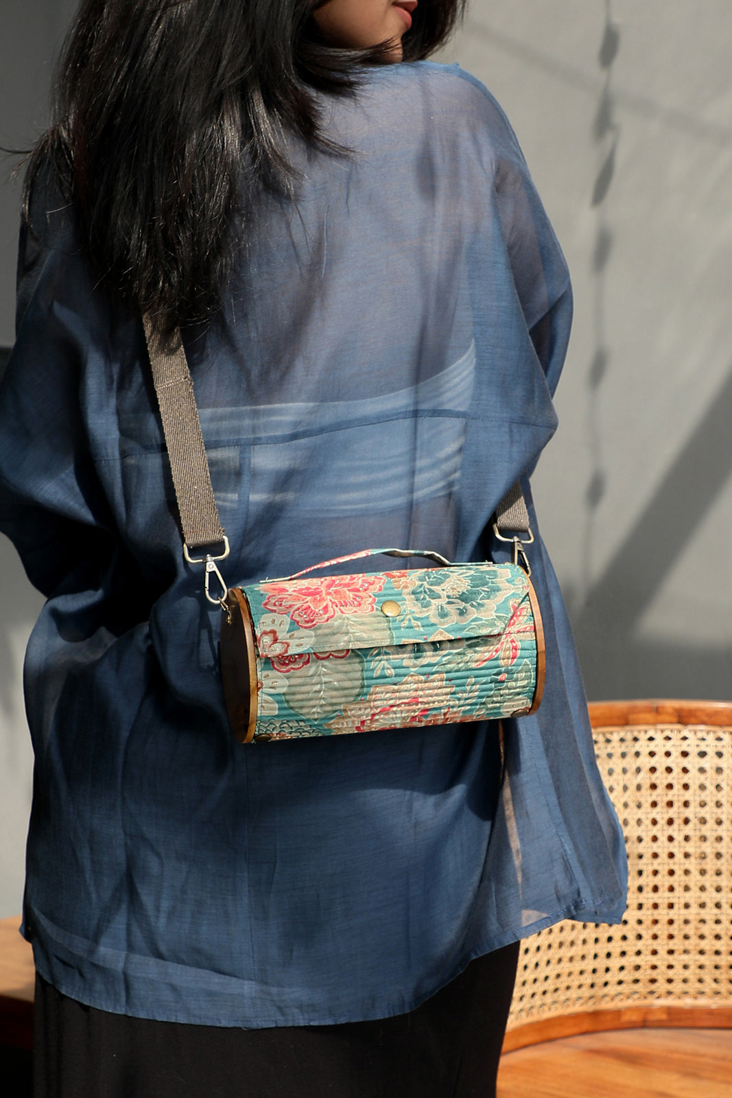 Compact yet spacious enough to hold all your essentials. Lukka Chuppi Round Clutch Single Sleeve features one pair of wood and one sleeve, accompanied by a divider for enhanced organization. This product is crafted entirely from eco-friendly materials such as upcycled fabric and reclaimed wood. Additionally, you have the option to purchase an additional sleeve for customization. All our products are packaged in completely zero-waste packaging.