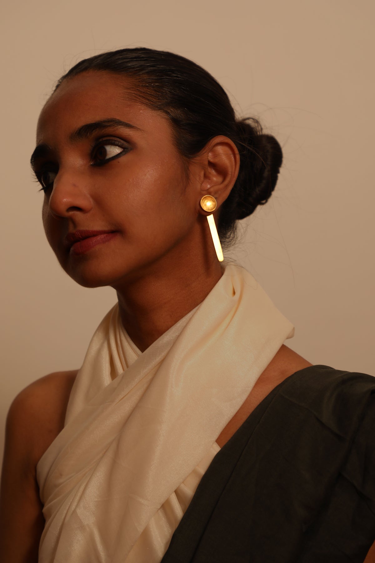 These earrings combine crescent shapes in a layered design that’s both bold and fluid.Styling Tip: Style them with a kaftan dress and metallic flats for a bohemian-inspired look.