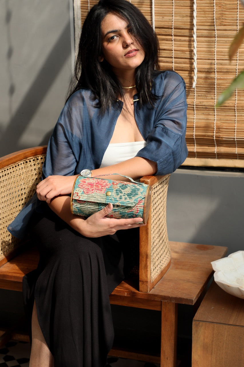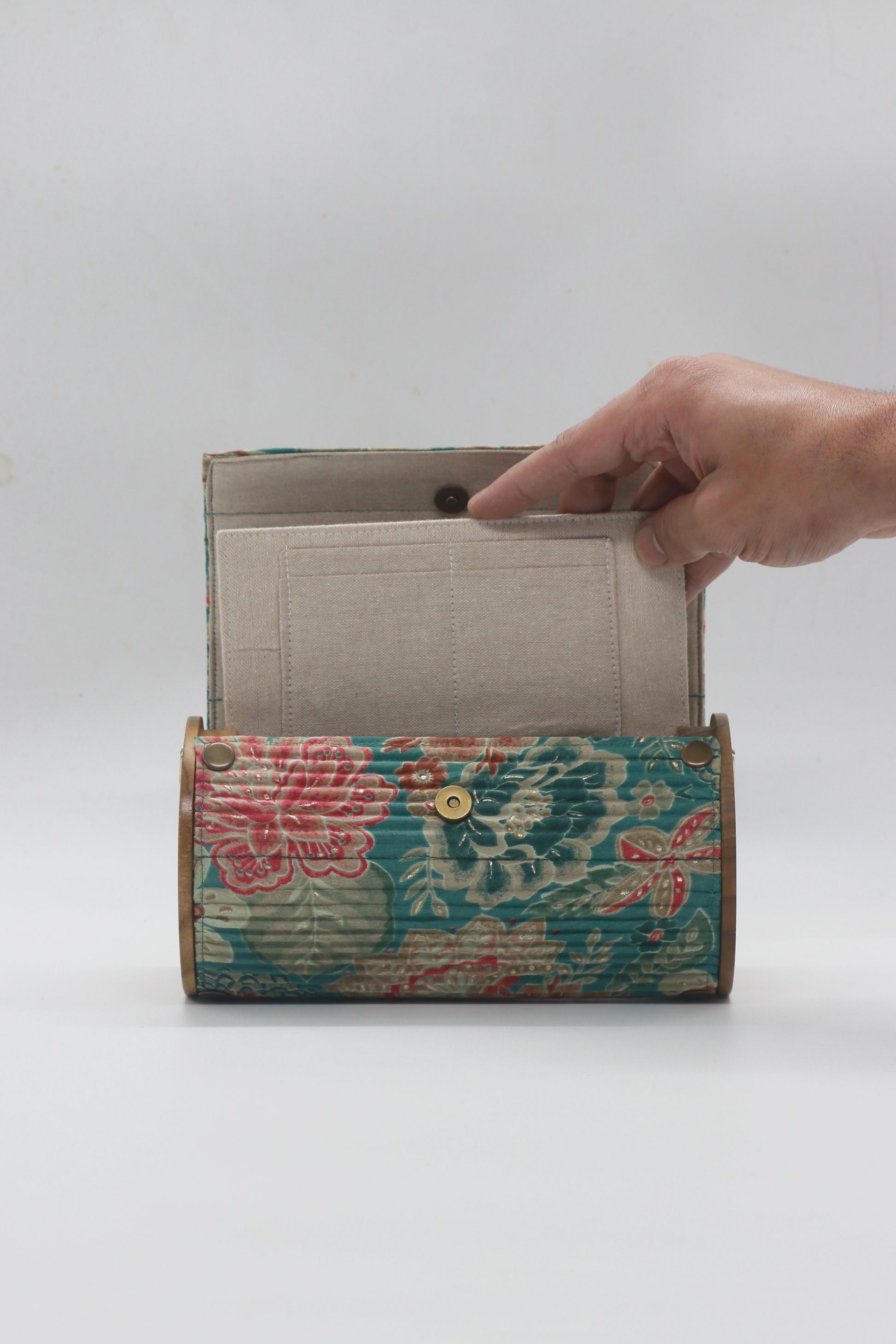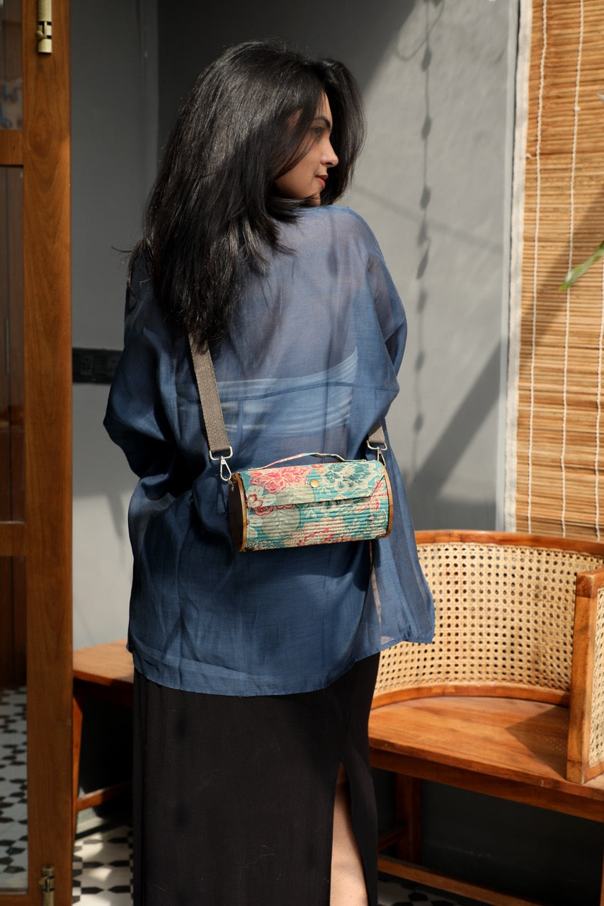 Introducing our round clutch – the epitome of versatility! Tailor your style with two detachable sleeves for mood changes. Featuring an extra compartment for your ATM cards doubling as a card holder, plus a convenient sling bag. Completely collapsible, crafted from 100% cotton, and free from plastic.