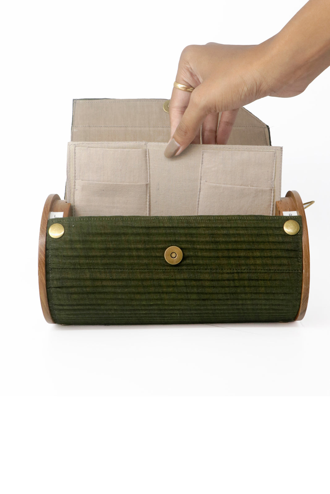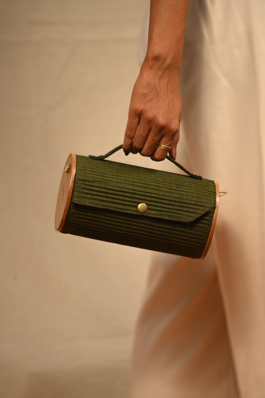 Nova & Solid Olive Green Round Clutch - Changeable Sleeve