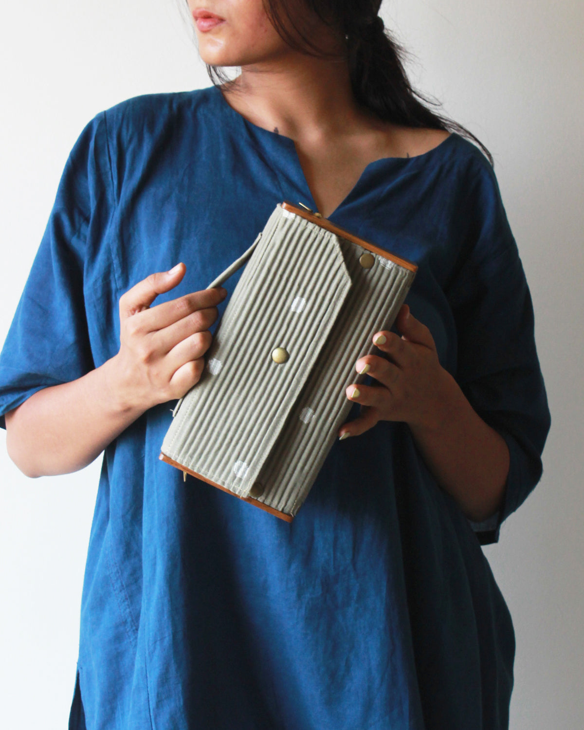 The Lukka Chuppi Box Clutch embodies the perfect blend of elegance, and sustainability while showcasing an irresistibly minimalistic style. We believe in the power of up-cycling and hand-craftsmanship to create beautiful, sustainable bags that not only make a fashion statement but also contribute to a better planet.