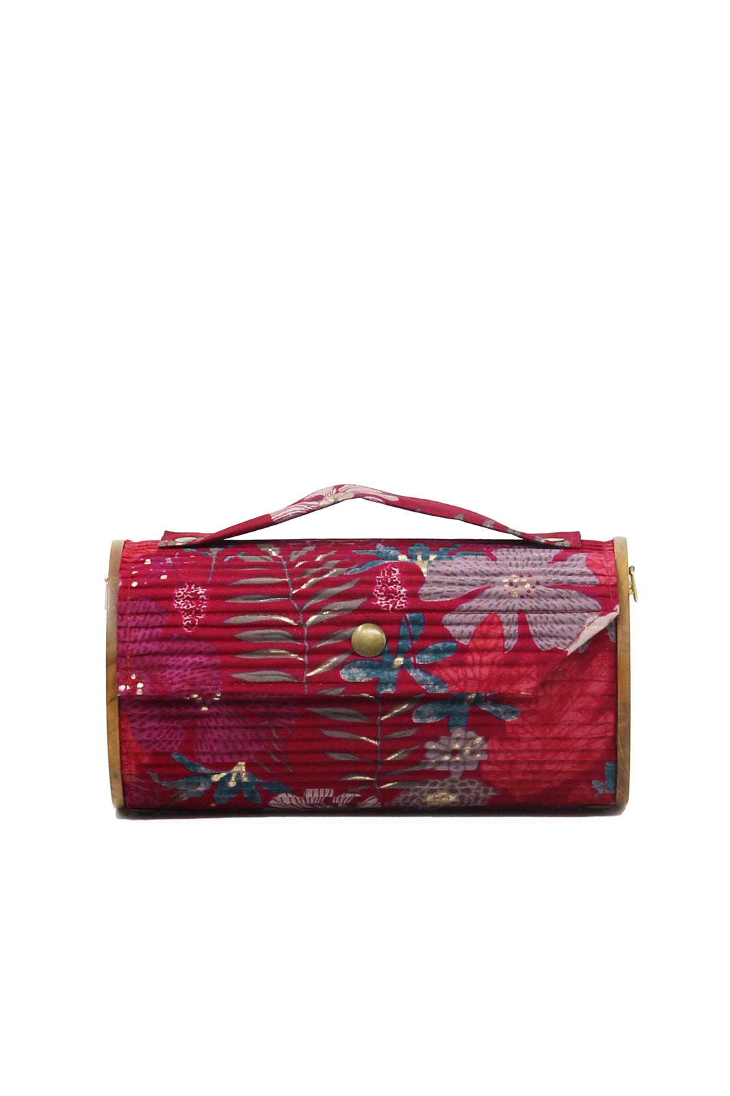 Compact yet spacious enough to hold all your essentials. Lukka Chuppi Round Clutch Single Sleeve features one pair of wood and one sleeve, accompanied by a divider for enhanced organization. This product is crafted entirely from eco-friendly materials such as upcycled fabric and reclaimed wood. Additionally, you have the option to purchase an additional sleeve for customization. All our products are packaged in completely zero-waste packaging.
