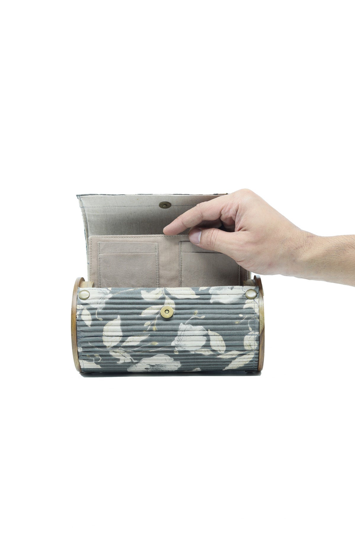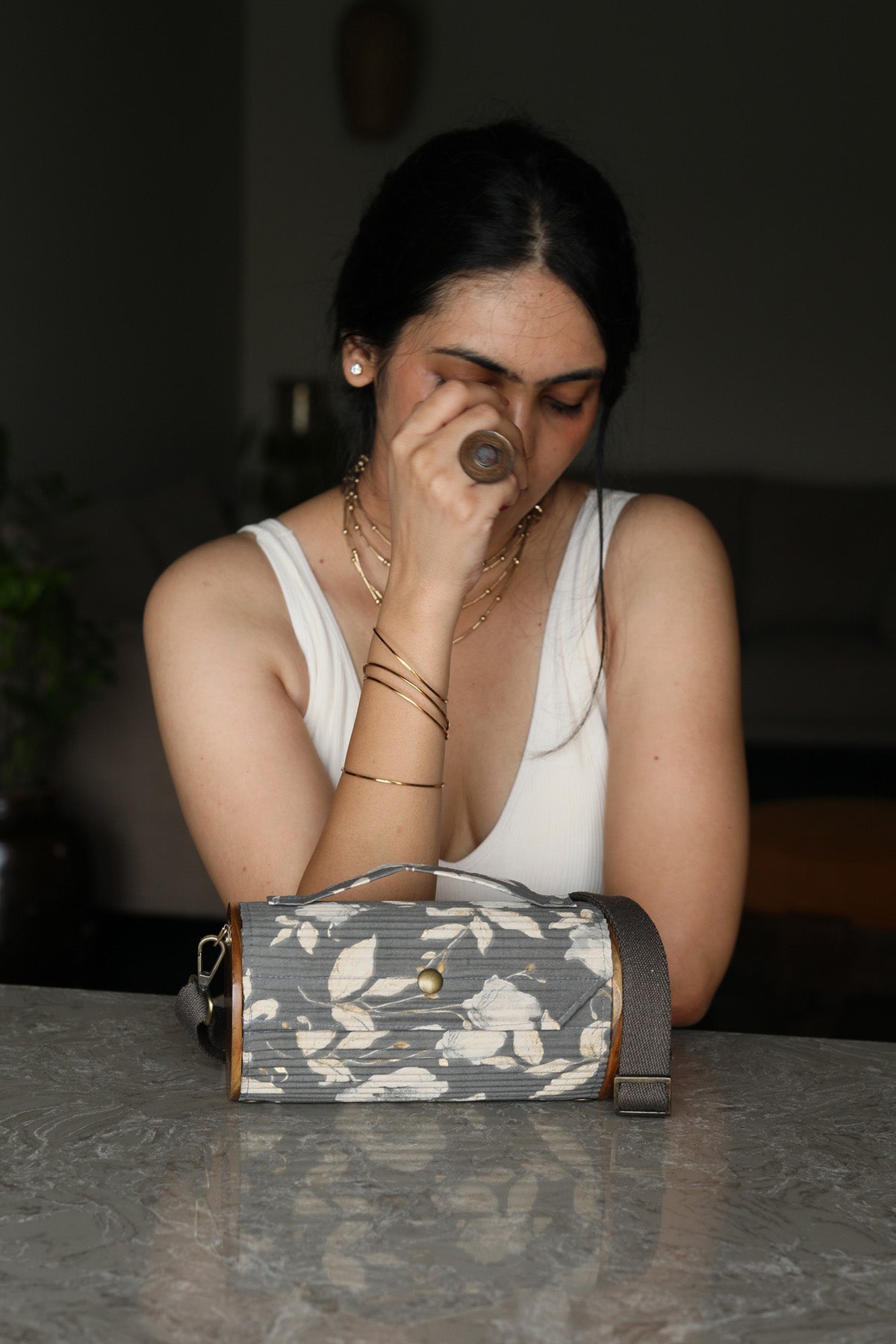 Sustainability: If we used virgin fabric and dyes our carbon footprint and water usage would be off the charts. Instead, our circular production uses upcycled Fabrics sourced directly from Block printer, and post production waste by local Tailors and Designers.. Lukka Chuppi Round Clutch – compact yet spacious enough to accommodate all your essentials. This two-in-one bag comes with two sleeves, one pair of wood, a sleek belt, and a divider to enhance organizational efficiency.