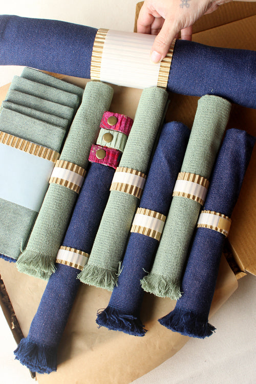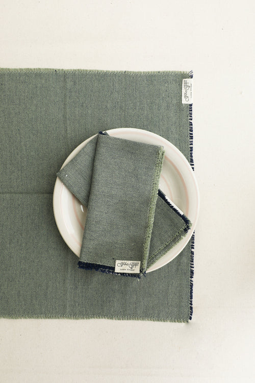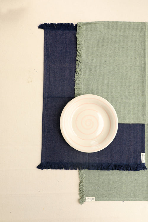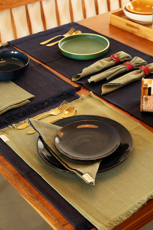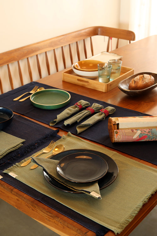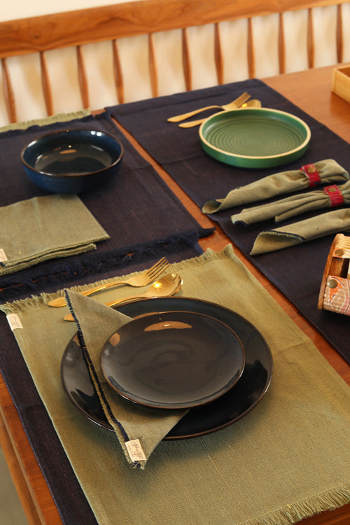 Dark Blue and Light Moss hand spun Cotton Table Linen Set of 6