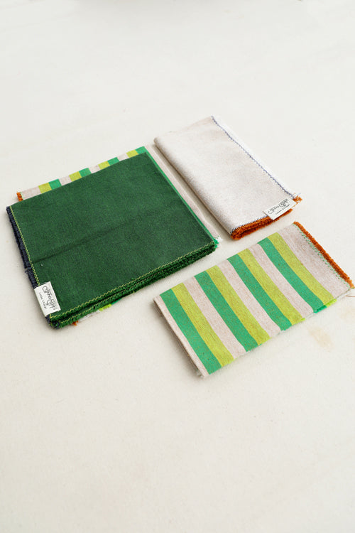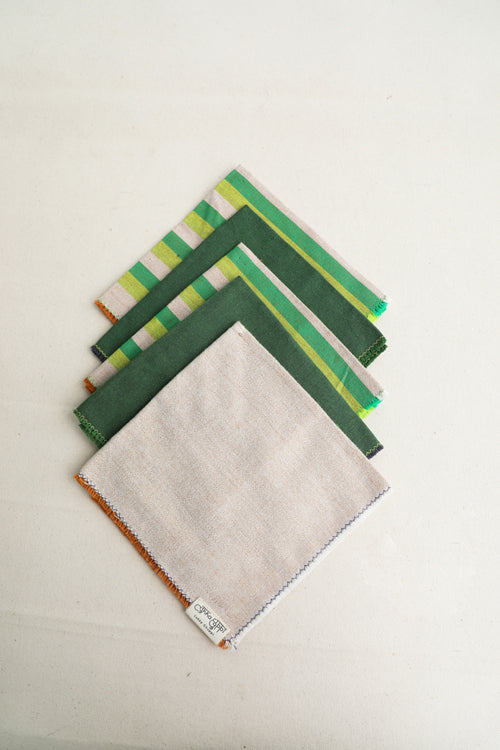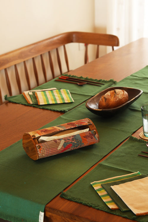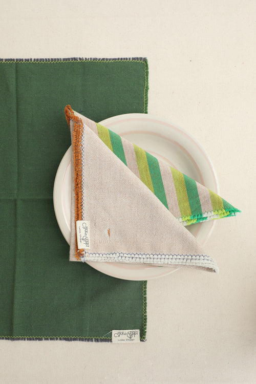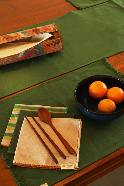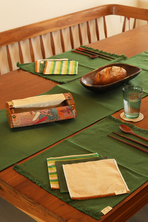 Forest Cotton Table Linen with Solid Mix and Stripes Napkins Set of 6