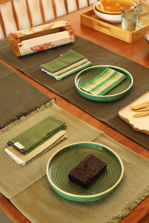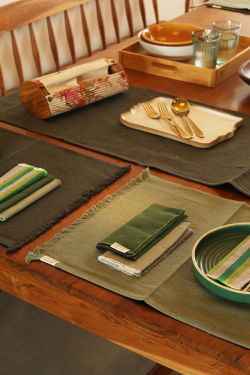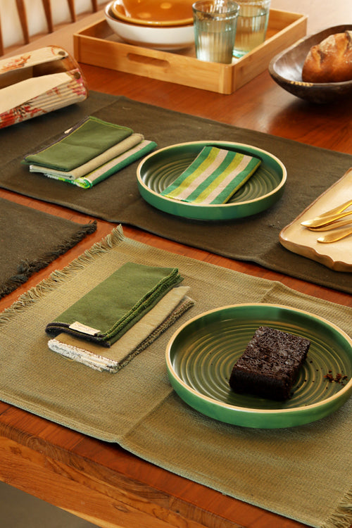 Stone and Sage Cotton Table Linen with Mix Solid and Stripes Napkins Set of 6