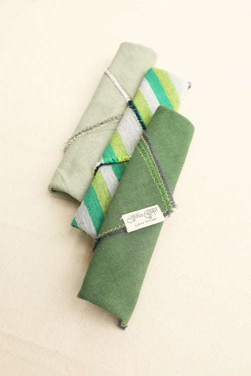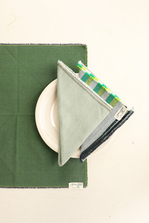 - 6 table napkins - 2 forest green, 2 sage and 2 striped