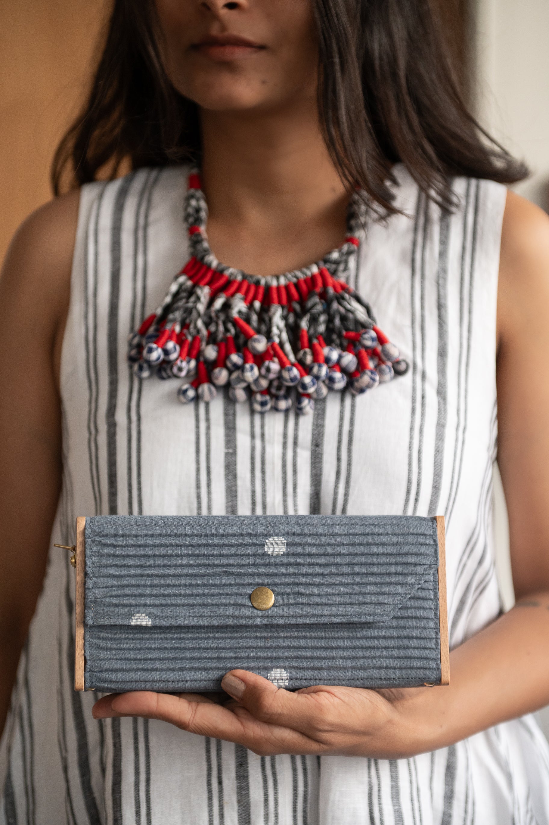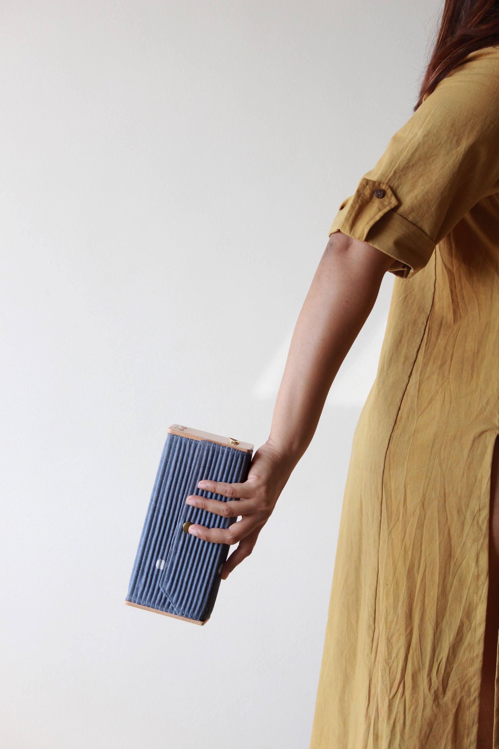 Embrace a sustainable and modern lifestyle, knowing that your accessory reflects your values and contributes to a more eco-friendly future. Made entirely from up-cycled materials, our mini clutch upholds uniqueness with its nature-conscious construction.