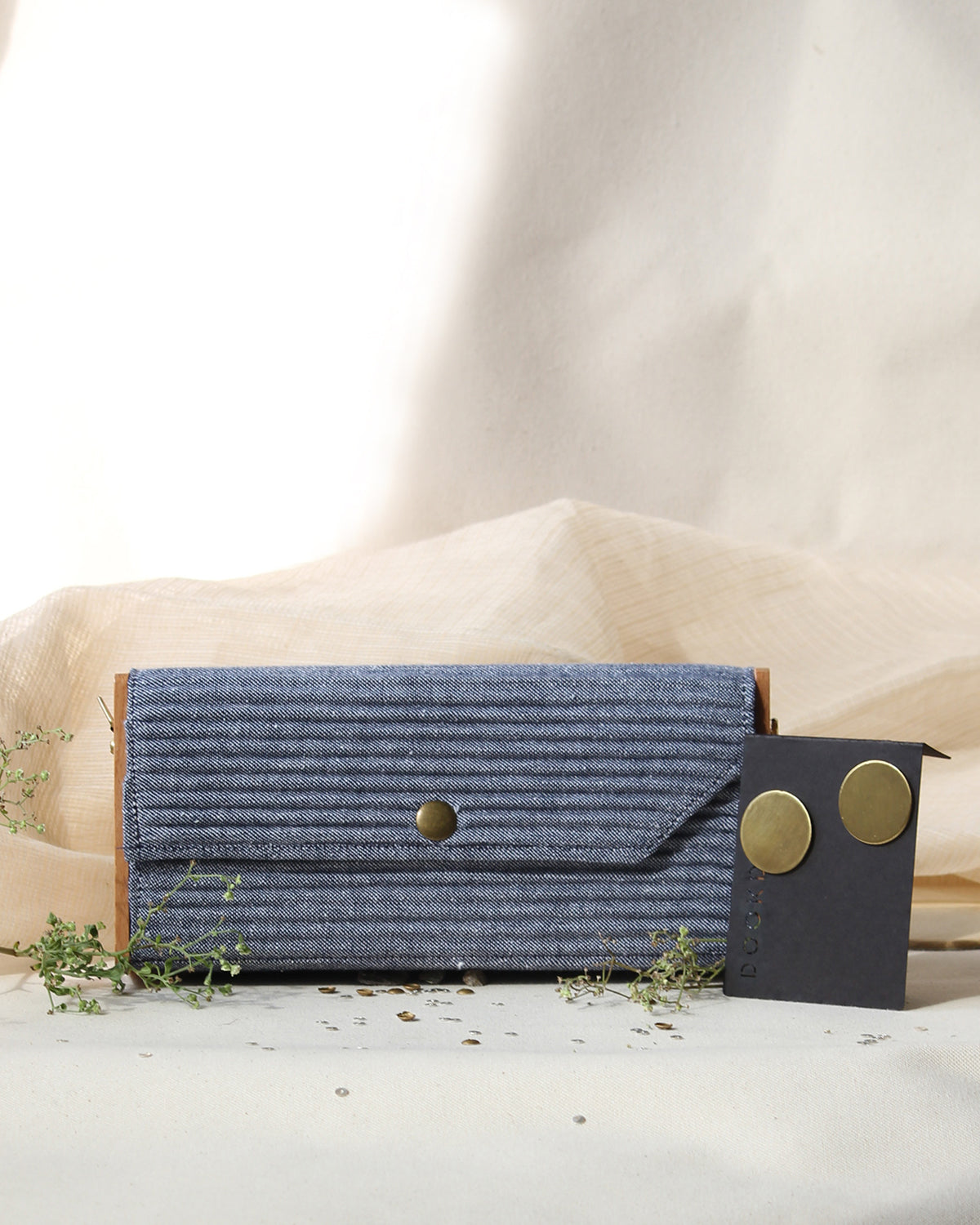 Introducing Raksha Bandhan gift hamper, featuring a handcrafted clutch and a pair of earrings from Dookdi. This thoughtfully curated hamper embraces the essence of simplicity and sustainable artistry.