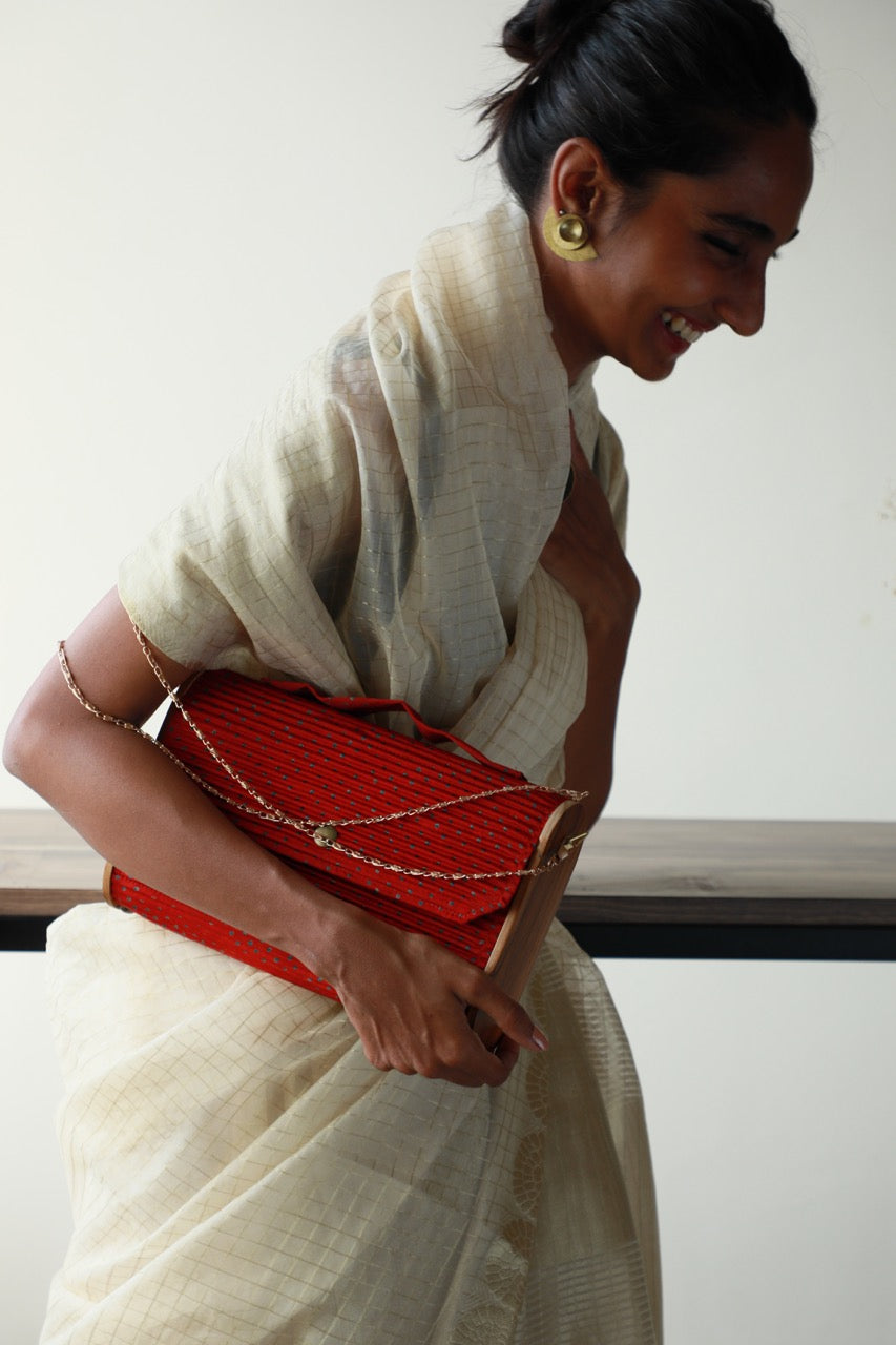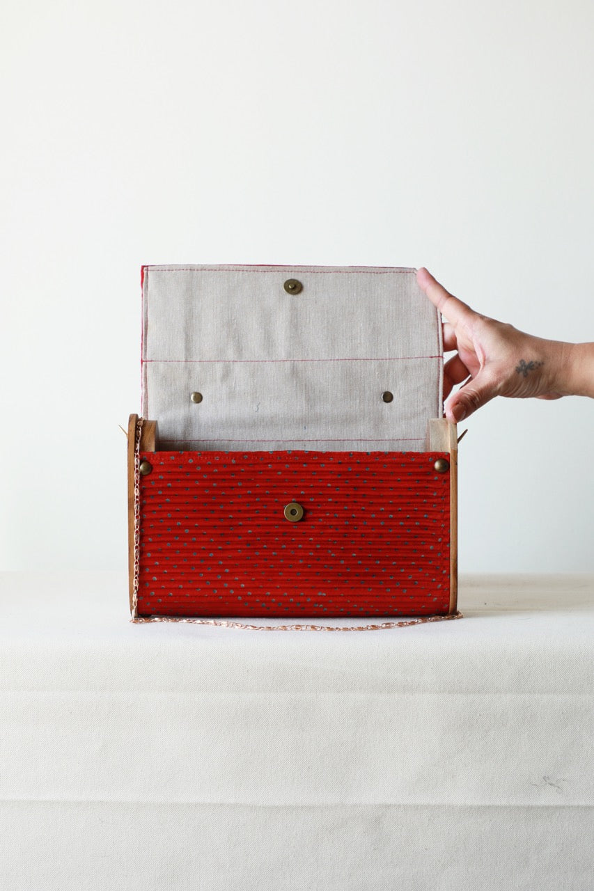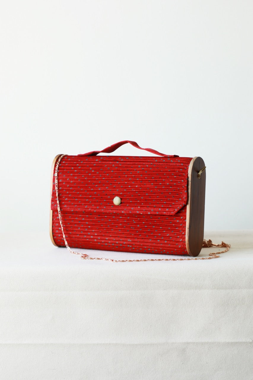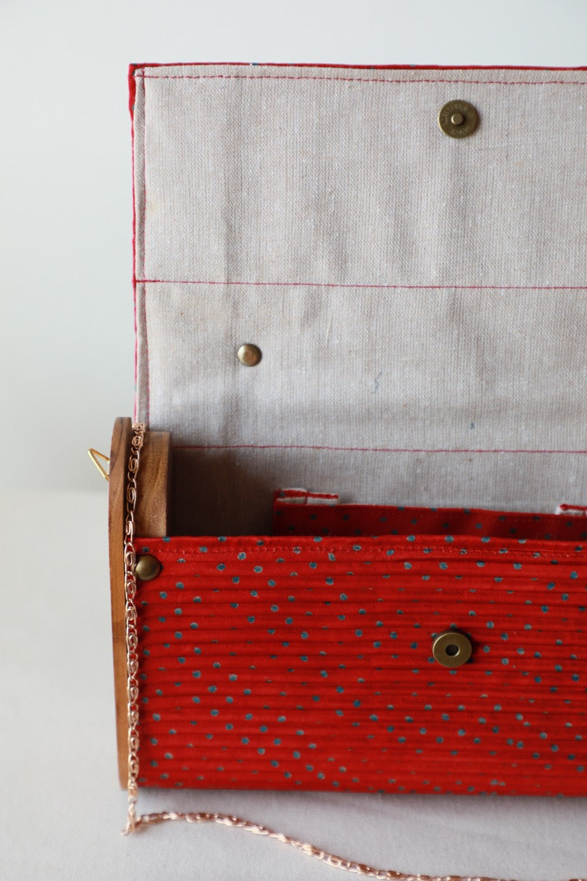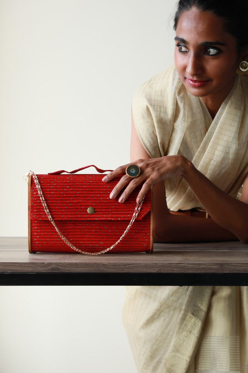 Sustainability: If we used virgin fabric and dyes our carbon footprint and water usage would be off the charts. Instead, our circular production uses upcycled Fabrics sourced directly from Block printer, and post production waste by local Tailors and Designers.. Our classic box clutch now comes in a new shape—the capsule clutch. Made with 100% eco-friendly materials like upcycled fabric and reclaimed wood, it provides ample space inside for your phone, cardholder, small makeup items, and wallet. It includes a sling chain for a chic look and is packed in zero-waste packaging, making it a smart choice for eco-minded shopper.