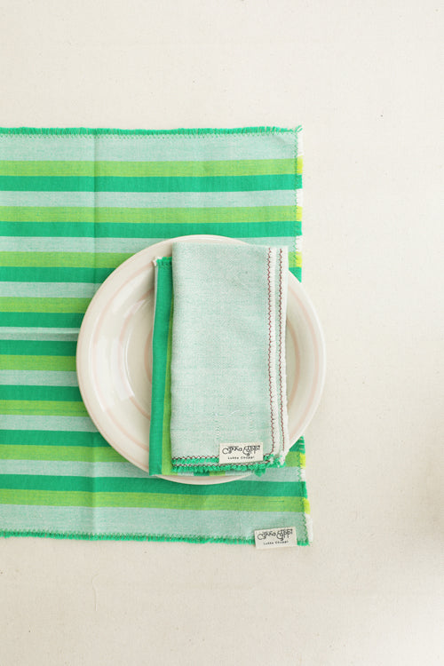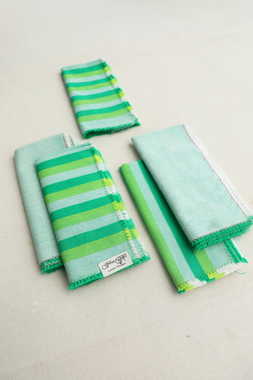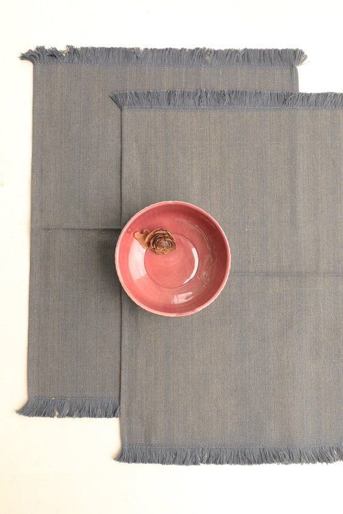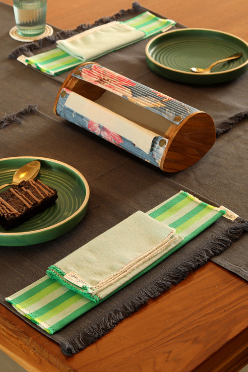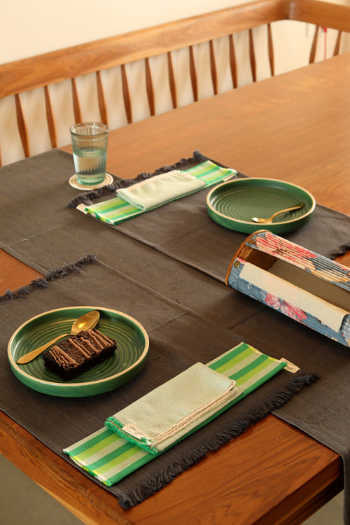 Stone Grey Cotton Table Linen with Solid Mix and Stripes Napkins Set of 6