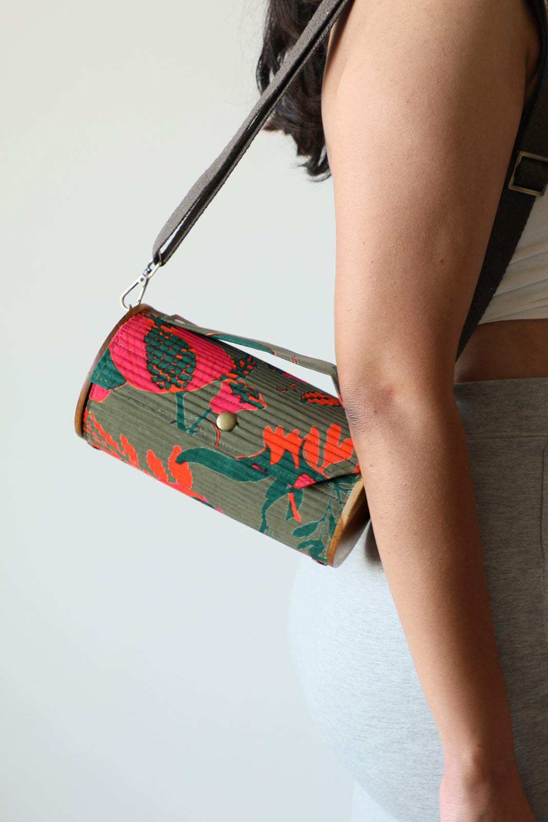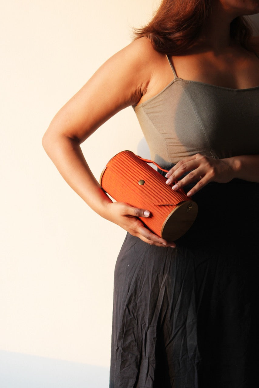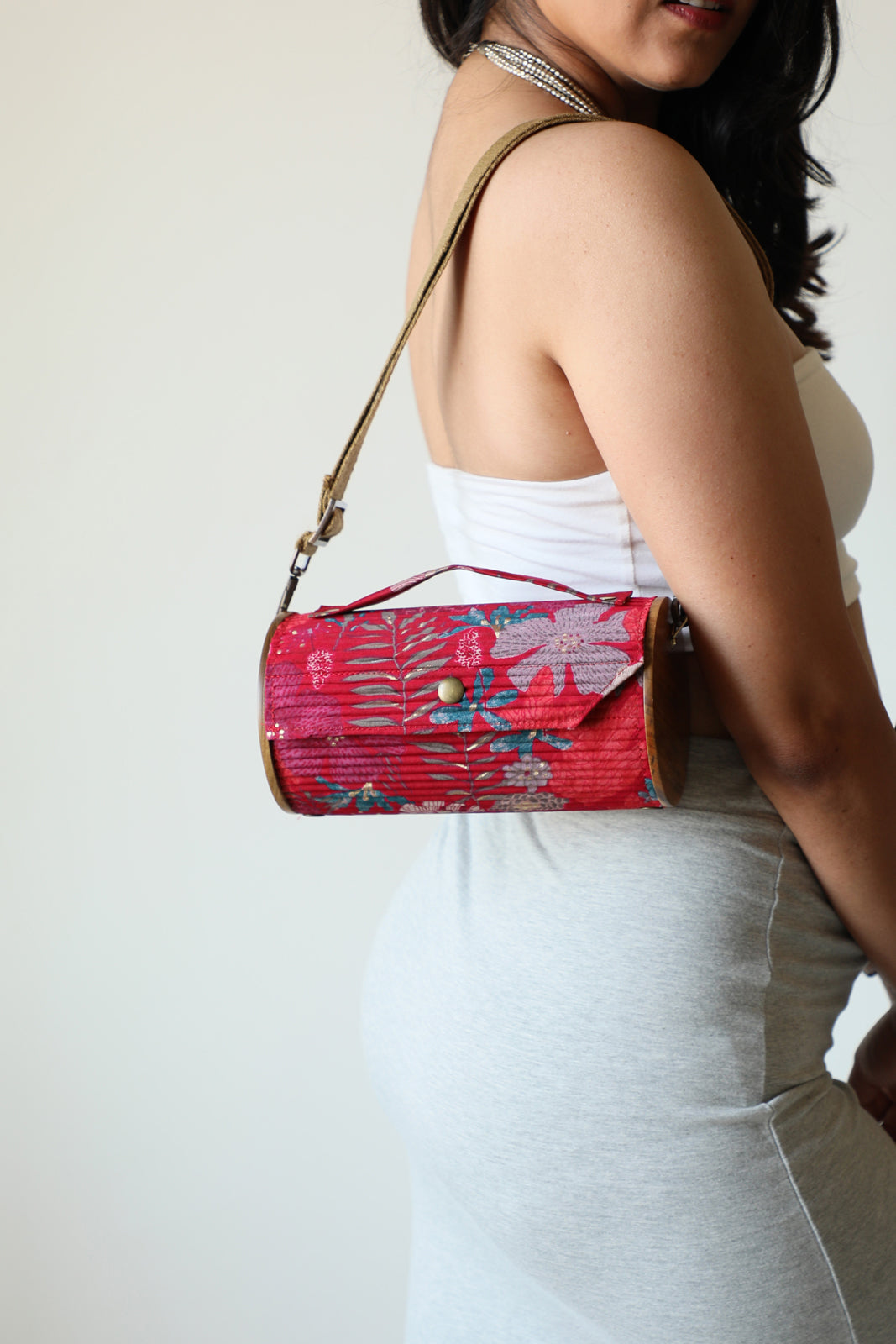 Our 4-in-1 Clutch Box comes with one pair of wood and four sleeves, enabling you to effortlessly create four different sizes with just one set. Complete with two different colored belts for added style, our products are not only collapsible but also interchangeable and entirely foldable. Packaged in zero-waste packaging, they are crafted with eco-friendly materials like upcycled fabric and reclaimed wood.